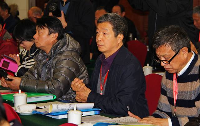 全国老科协副会长、黑龙江省老科协会长申立国在中国老科协六届五次理事会议主席台