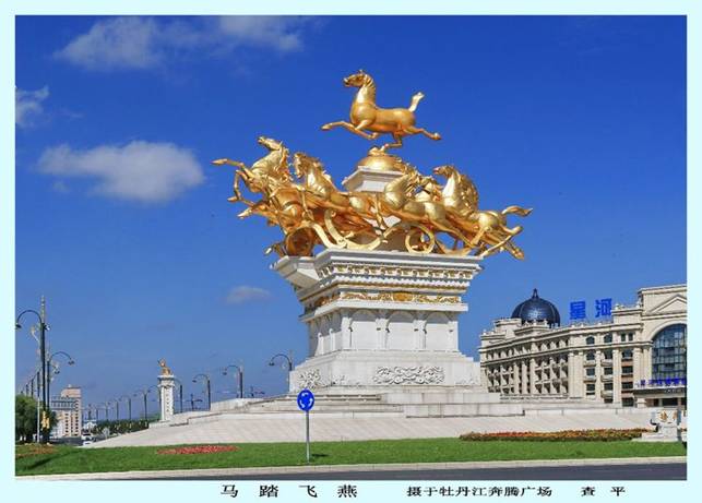 图为牡丹江大桥南端奔腾广场的主雕塑——奔腾,是牡丹江城市建筑诸多景观雕塑之一。激励斗志,鼓舞人心,是江南新区的靓丽风景。