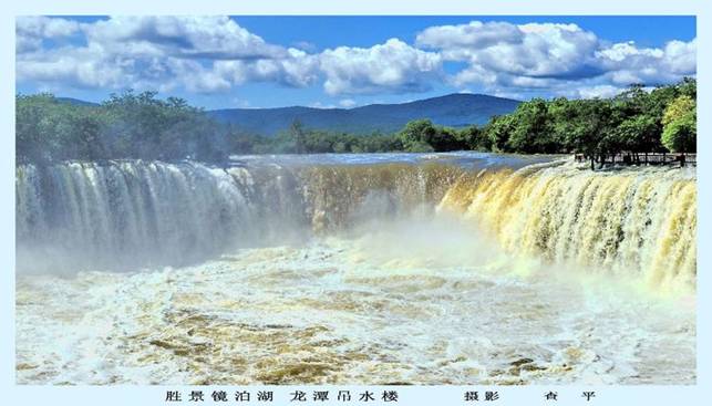 图为名扬天下的镜泊湖胜景——龙潭吊水楼。山清水秀的牡丹江镜泊湖是您旅游必到的5A级国家名胜景区,欢迎国内外的宾客到此一游,观赏牡丹江的绿水青山是金山银山的风采。