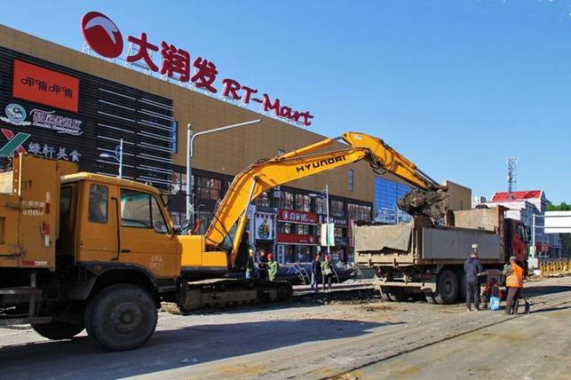 挖掘工程开始,先由机械设备凿开柏油地面。