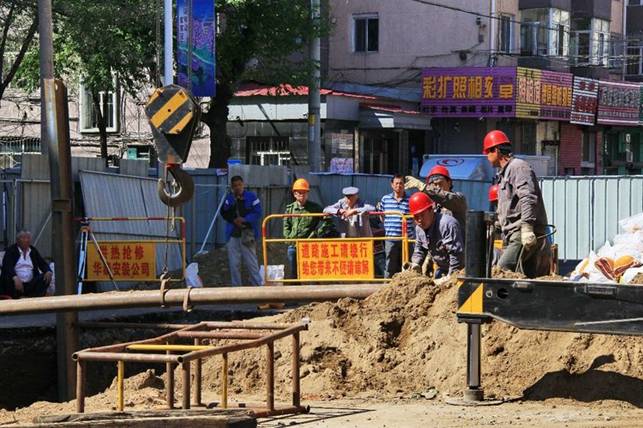 今年四月十二日始,牡丹江新安街拓宽改造工程开始。地面清理实施之后,首先破土动工的是供热管网的铺设安装。经过近两个月的不懈努力管网铺设全面竣工,为而后进行的各项工程铺平道路。小编曾多次去工地周边遛弯,目睹施工过程的艰难,拍摄了热电有限公司施工人员现场劳作的场面。
