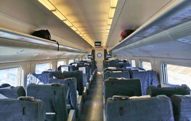 这是二等车厢的内部,车窗有可自由拉伸的遮阳板。