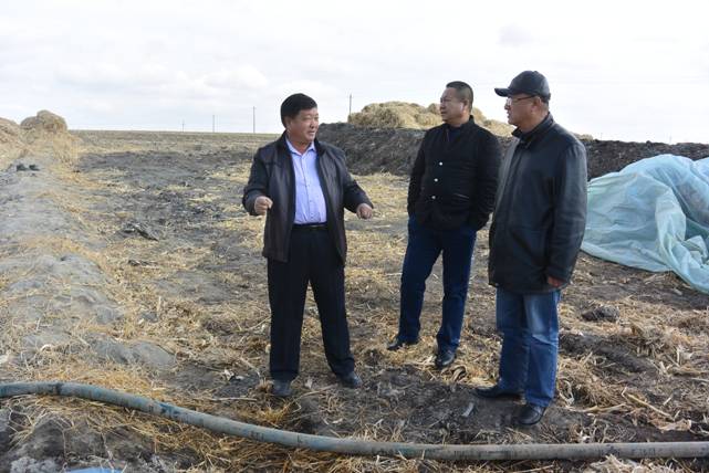 穆棱市老科协副会长于晶(中)、穆棱市马桥河镇政府镇长李军远(左1)、穆棱市马桥河镇北盛村党支部书记魏延山(右1)在共同研究作物秸杆肥料化问题