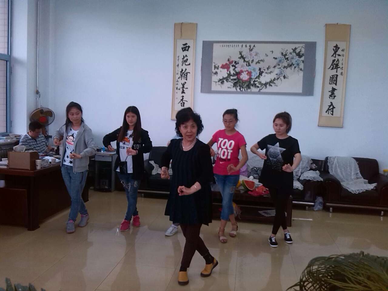 市文广新老科协理事马书君在黑龙江农经学院为大学生排练节目