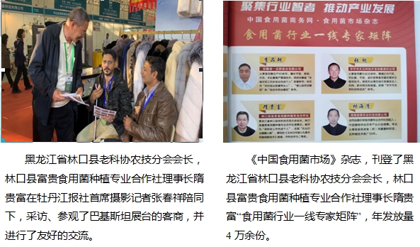 会展期间,隋贵富在牡丹江报社首席摄影记者张春祥陪同下,采访、参观了伊朗、巴基斯坦、非洲、朝鲜、越南、韩国、澳大利亚、泰国、英国、蒙古等客商进行了友好的交流,并把《振兴发展中的林口县富贵食用菌种植专业合作社》的科普宣传单发给了他们,一切都在友好的气氛中进行。