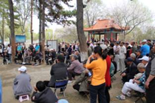 生态文化广场、运动广场、怡心湖休闲广场、人民健身广场、森林区休闲广场、牡丹园健身广场,功能各异的健身器材和宽阔平整的场地吸引了无数的人群。踢毽的、练剑的、舞扇的、打太极拳的、打球的、跑步的、竞走的、五花八门的体育运动激发着爱好者的热情;唱歌的、跳广场舞的、练琴的,还有热爱“国粹”的各路票友,字正腔圆的戏曲配合京胡、锣鼓钗的铿锵伴奏,吸引了众多游人,“梨园亭”内外情趣盎然,票友、听众、凉亭、美景全都融合在一起——公园里的良辰丽景;园内散步的有老人、有青少年、有妇女儿童、还有呀呀学步的小宝贝和守在孩子身边的年青父母,凸显太平盛世、和谐幸福的场景。说是黑龙江省的甲级公园,恰到好处。