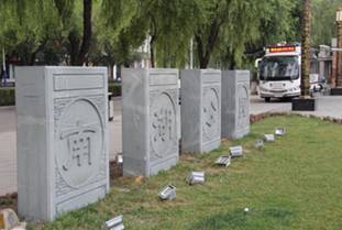南湖公园的主标志——南大门,清一色的花岗岩石材雕塑,威武壮观