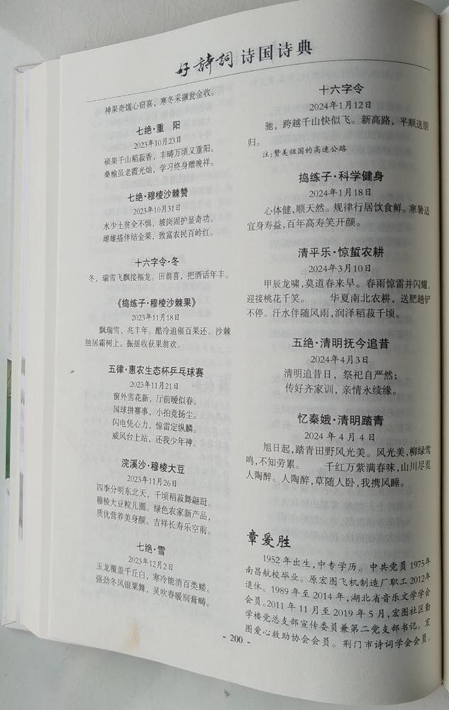 “中华国学出版社”出版的《好诗词诗国诗典》,坚持以人民为中心的创作导向,编入推出来自全国的587名诗词作者“好诗词暨状元杯中华诗词广西桂林创作大赛作品集”5000余首增强人民精神力量的优秀作品。