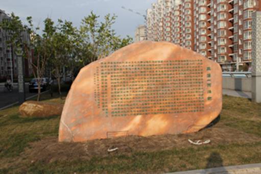 巨石刻写的《治河记》,记载了河流治理的始末缘由,公园建设成功实属不易