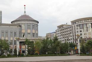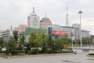 大商新玛特就在广场的西南面 广场北面的栋栋高楼为广场作陪衬