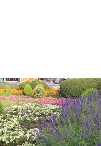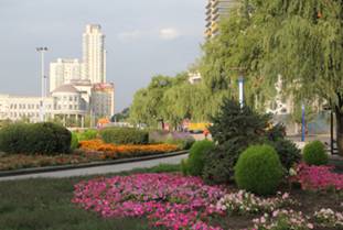 修剪漂亮的花卉、树木为广场增添了活力 广场的树种有白桦、丹东桧、垂柳、火炬树等