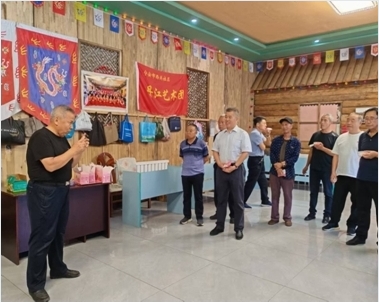 在参观宁安市老科协宁古塔满族文化研究基地时,宁安市老科协理事、老科协社科文史研究会会长
