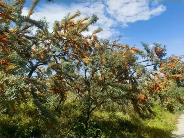 林口县亚河天祥顺沙棘种植加工基地,由林口县老科协副会长赵国发和农技分会会员、老专家孙吉祥重点扶持的基地。1983年,孙吉祥承包了村里的350亩荒山开始种植沙棘林,每年培育优良品种“深秋红”沙棘树苗50万株。在此基础上,他还在全县稳步推进沙棘种植面积。到2018年,全县沙棘种植面积突破10万亩,成为全国闻名的冬果沙棘种植基地。2020年,天祥顺食品有限公司在柳树承包了1800亩荒山栽种了沙棘。赵国发、孙吉祥积极帮扶,重点给予技术指导,连续三年帮助王晓军沙棘园剪枝和补苗,目前果园已初具规模,部分沙棘树已经见果。天祥顺食品有限公司创建的沙棘基地,已基本上满足了该公司加工生产沙棘果汁的需求,公司加工生产的沙棘果汁类系列食品十分畅销,深受消费者的好评。截至目前,老科协科技工作者共引领广大科技示范户创建各类科技示范园区和基地21处,带动科技示范户105户。